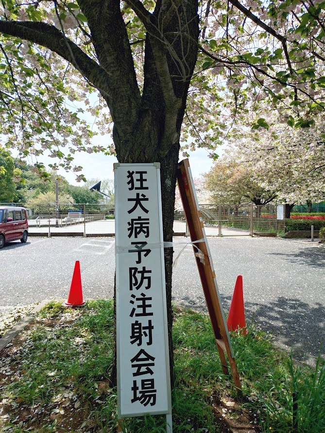 昨日は八重桜が満開の市内、いこいの森公園で狂犬病予防屋外集合注射出動日でした。