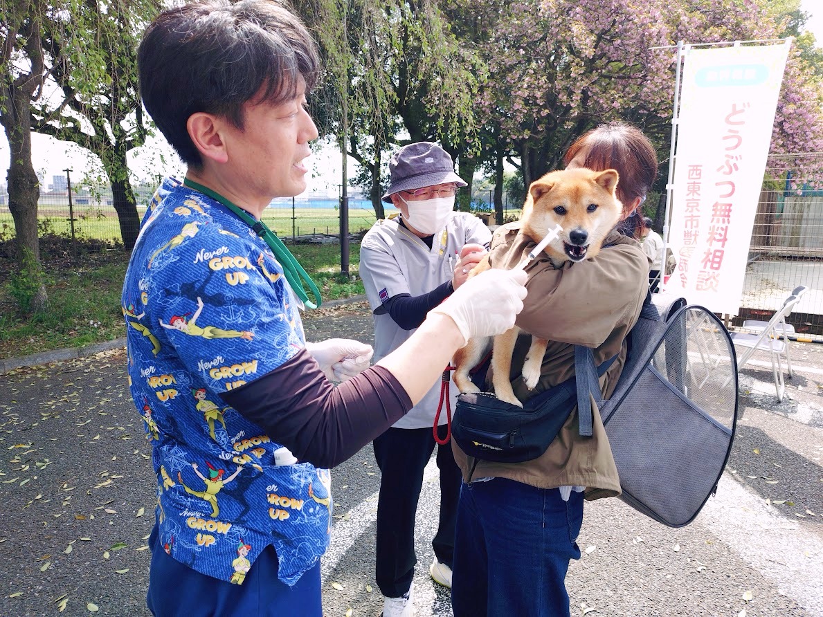 北多摩地域では動物病院での集合注射が基本ですが、西東京市では動病院会場に加えて、市内2会場で屋外での集合注射会場を行っています。